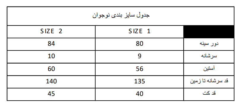 *مدل نوجوان مناسب 11 سال الی 14 سال می باشد(برای انتخاب دقیق طبق جدول سایز خود را انتخاب کنید)