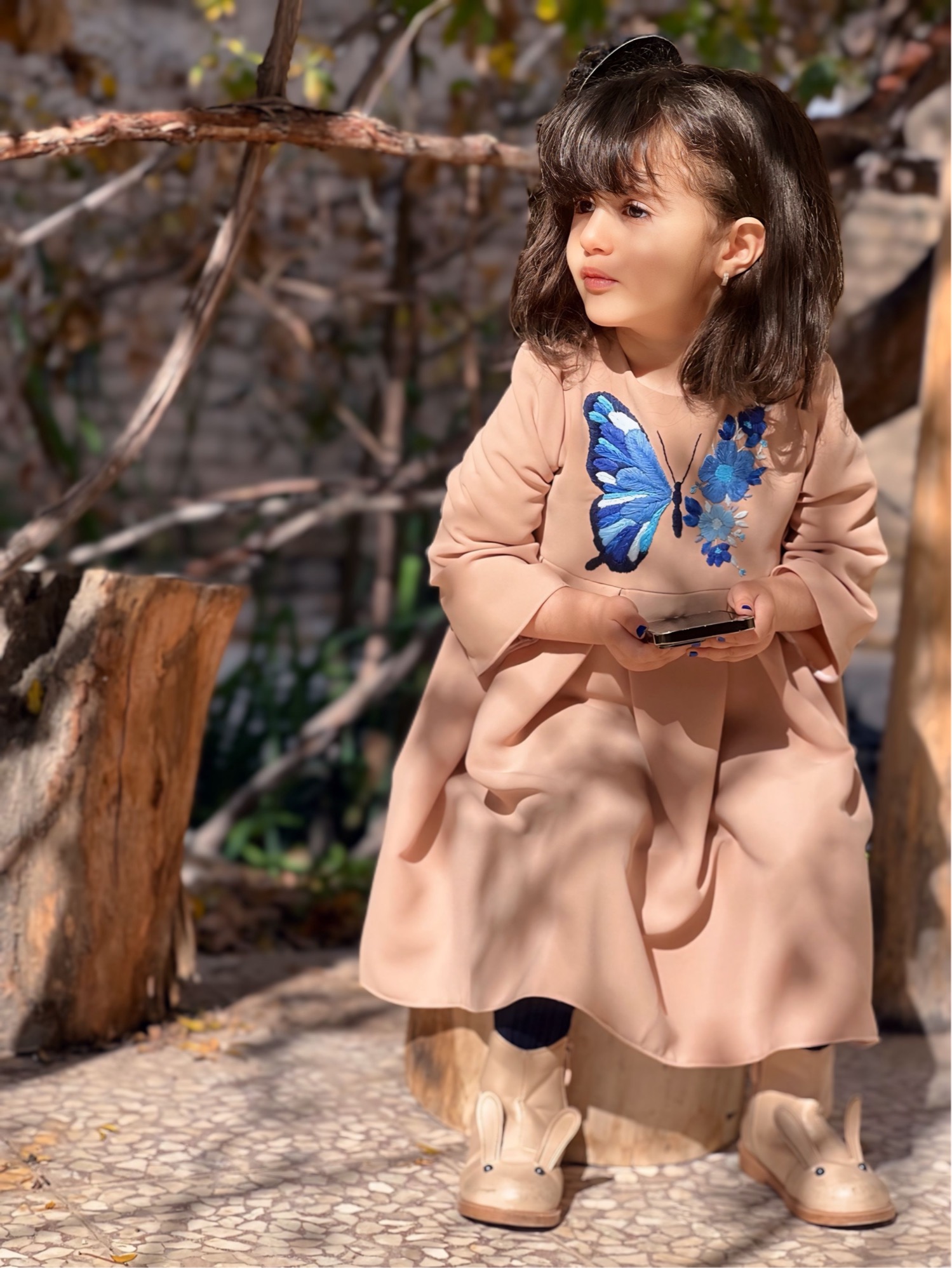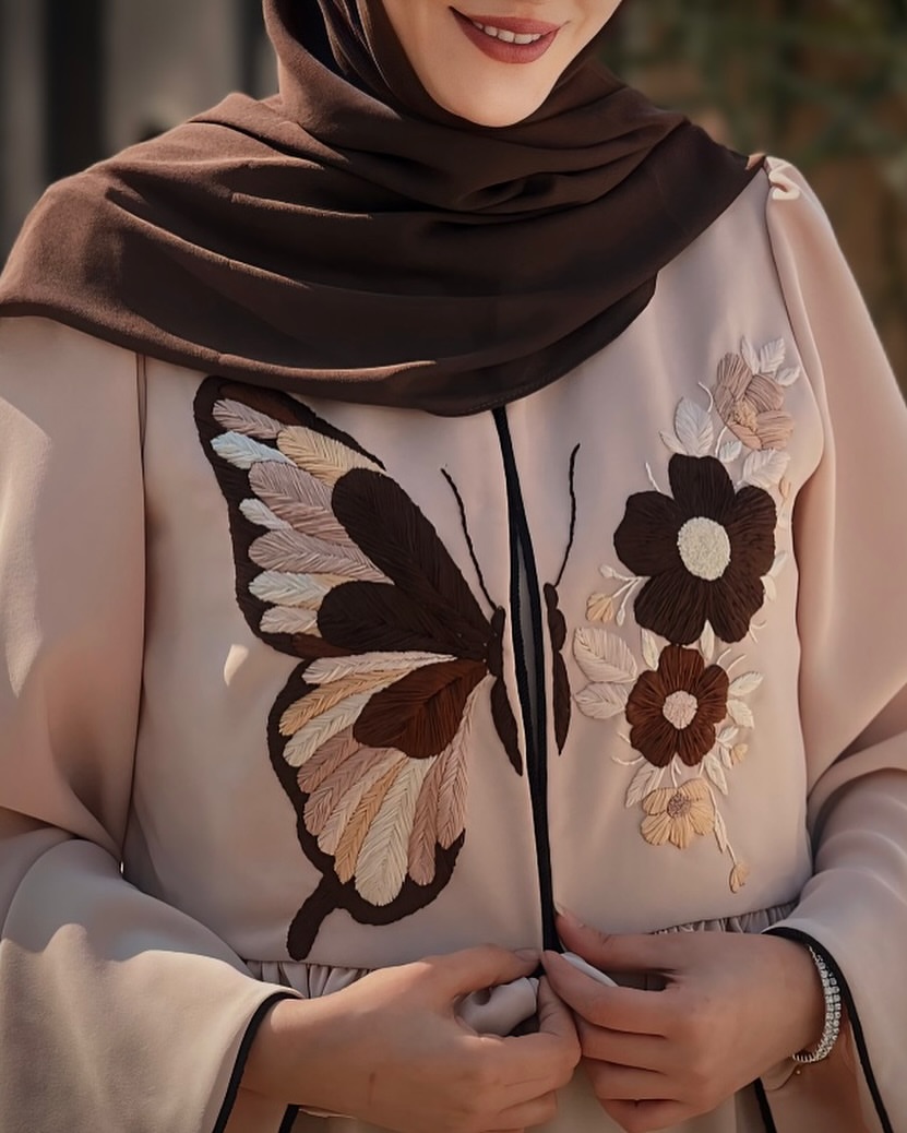 *گلدوزی پروانه کودک هم دقیقا مشابه ست مادر به رنگ قهوه ای دوخته میشه