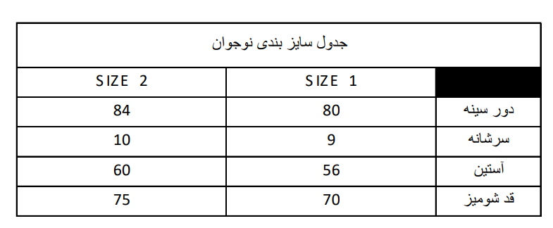 *مدل نوجوان مناسب 11 سال الی 14 سال می باشد(برای انتخاب دقیق طبق جدول سایز خود را انتخاب کنید)