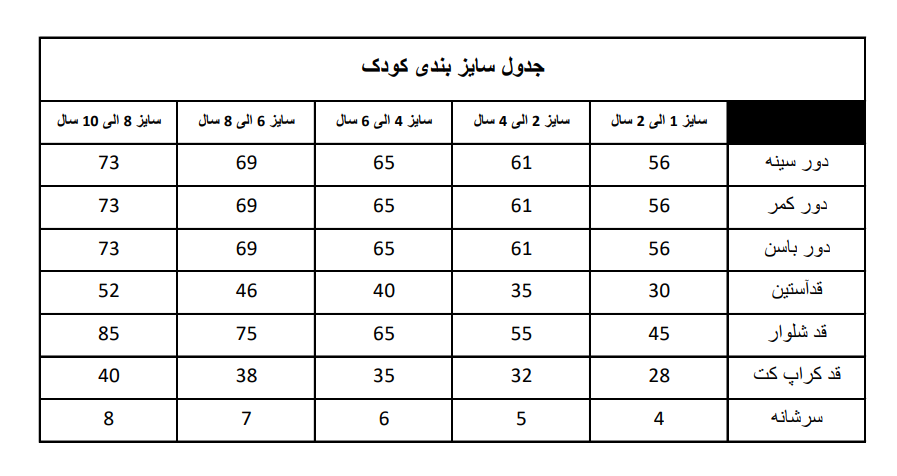 *بر اساس جدول های زیر سایز مادر یا نوجوان یا کودک خود را انتخاب کنید