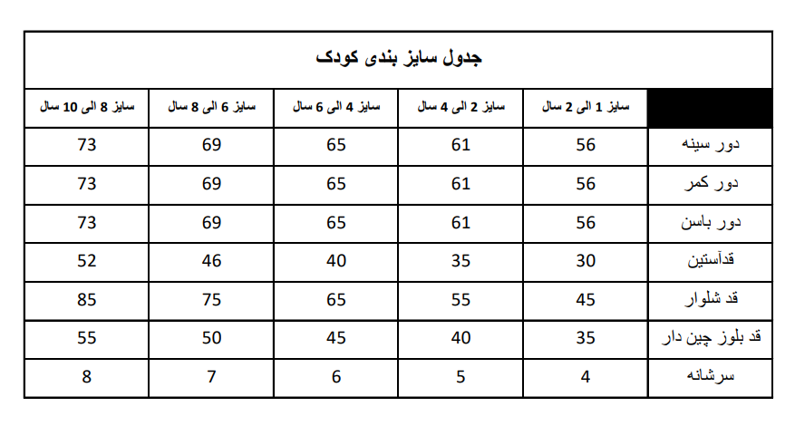 *برای بدست آوردن سایزتون اندازه ها رو با متر کیپ بگیرید و آزادی ندید...آزادی لازم در دوخت لحاظ می شود