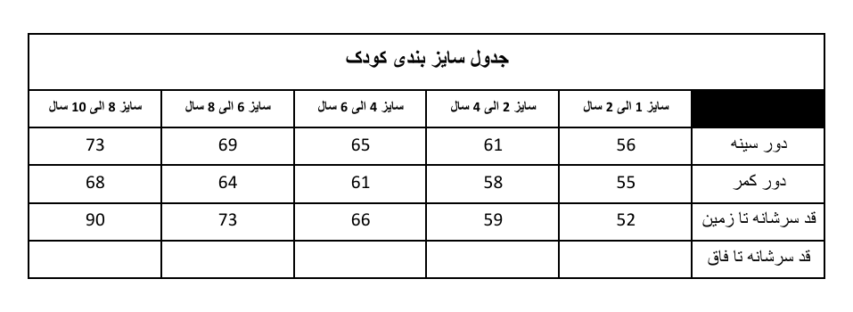 *بر اساس جدول های زیر سایز مادر یا نوجوان یا کودک خود را انتخاب کنید