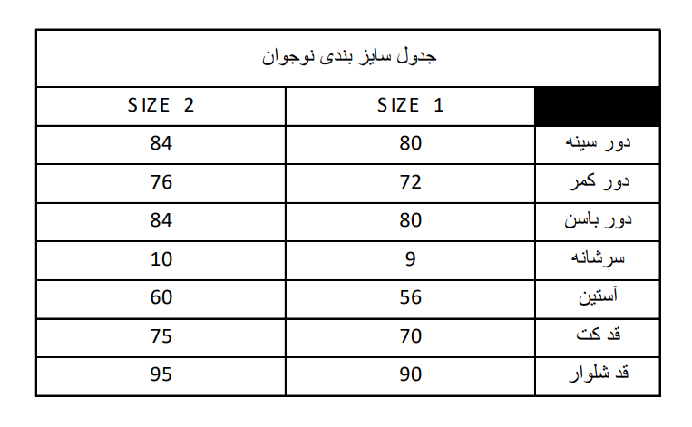*برای بدست آوردن سایزتون اندازه ها رو با متر کیپ بگیرید و آزادی ندید...آزادی لازم در دوخت لحاظ می شود