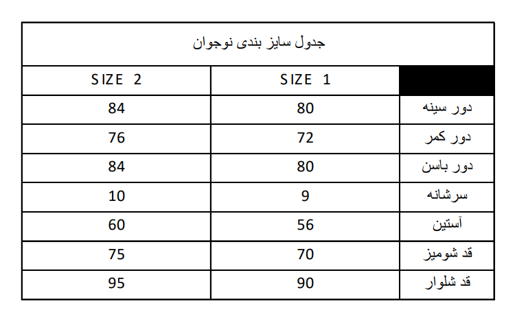 *برای بدست آوردن سایزتون اندازه ها رو با متر کیپ بگیرید و آزادی ندید...آزادی لازم در دوخت لحاظ می شود